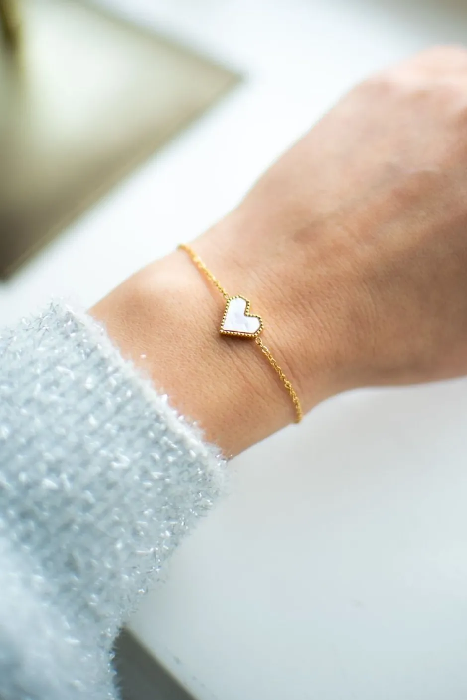 Dit dunne gouden armbandje met een roze geometrisch hartje maakt jouw dagelijkse outfits helemaal af en is super leuk om te combineren met andere armbandjes. Tip: ook perfect om cadeau te geven!