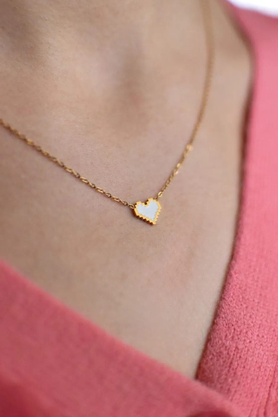 Dit dunne gouden kettingkje met een wit pixel hartje is een super leuke toevoeging aan je dagelijkse outfits en kan goed gecombineerd worden met andere kettingen. Tip: ook perfect om cadeau te geven!