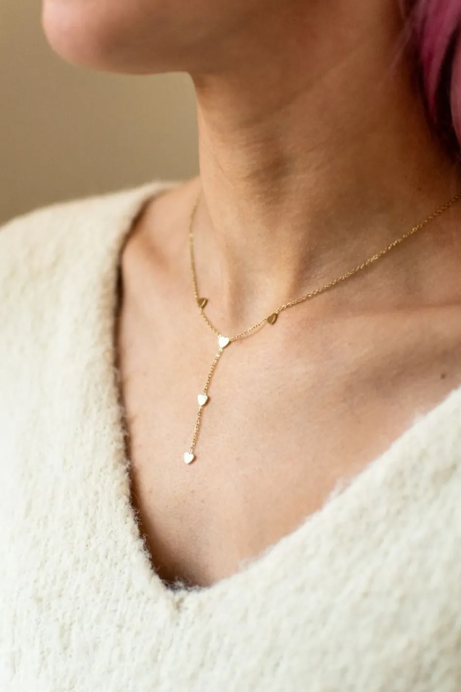 Dit dunne gouden kettinkje met vijf kleine hartjes eraan is een prachtige toevoeging aan elke outfit! Het subtiele, stijlvolle ontwerp is perfect voor dagelijks gebruik of een speciale gelegenheid. Tip: ook leuk om cadeau te geven!