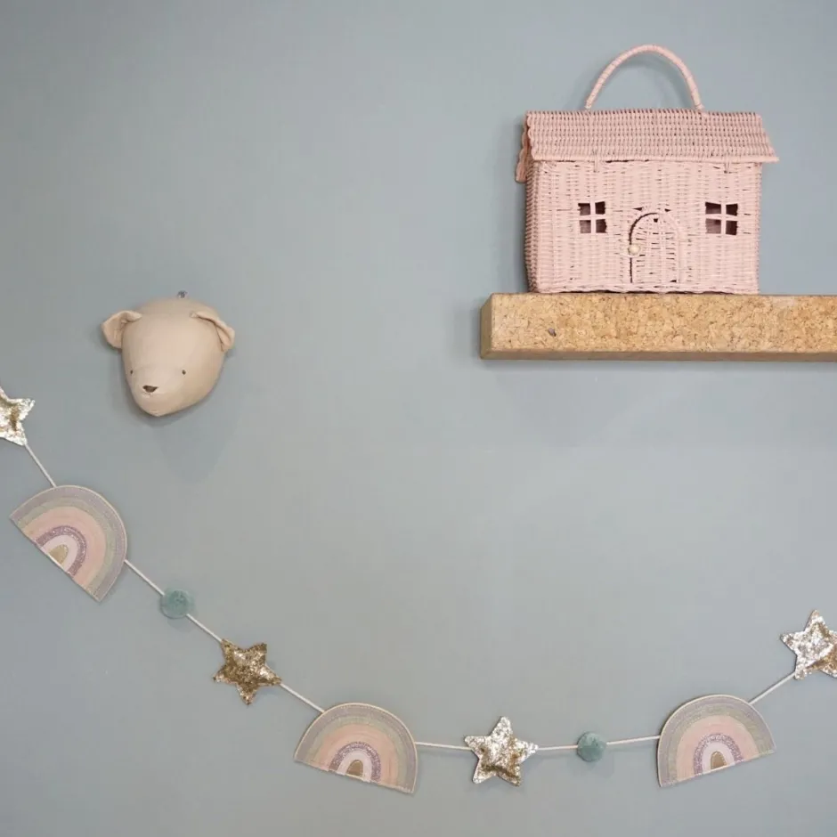 Dromen laten uitkomen en kamers decoreren: dat doe je met deze regenboog-slinger! De slinger is ongeveer 135cm lang en heeft prachtige, zachte bedels.