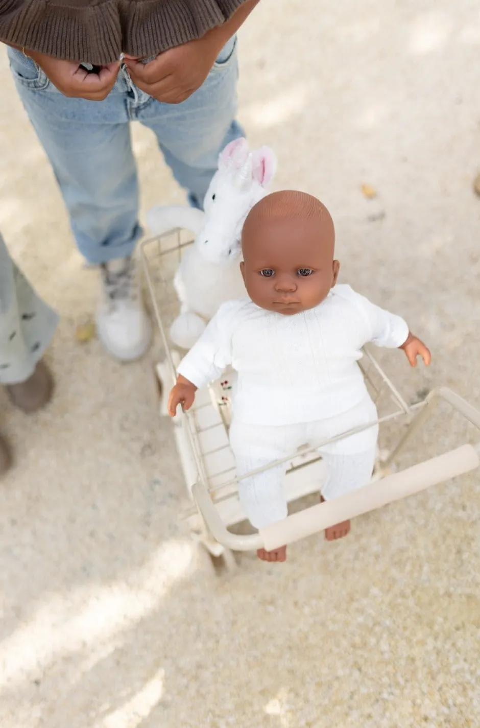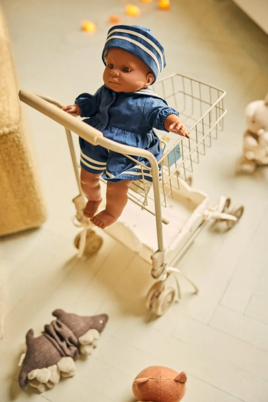 Deze winkelwagen is mega leuk voor je kids! Het winkelwagentje heeft plek voor al de boodschapjes en zelfs voor de favoriete knuffel of pop. Onderaan is er een stoffen mandje die vastgemaakt kan worden met strikjes. Super leuk om mee te spelen dus!