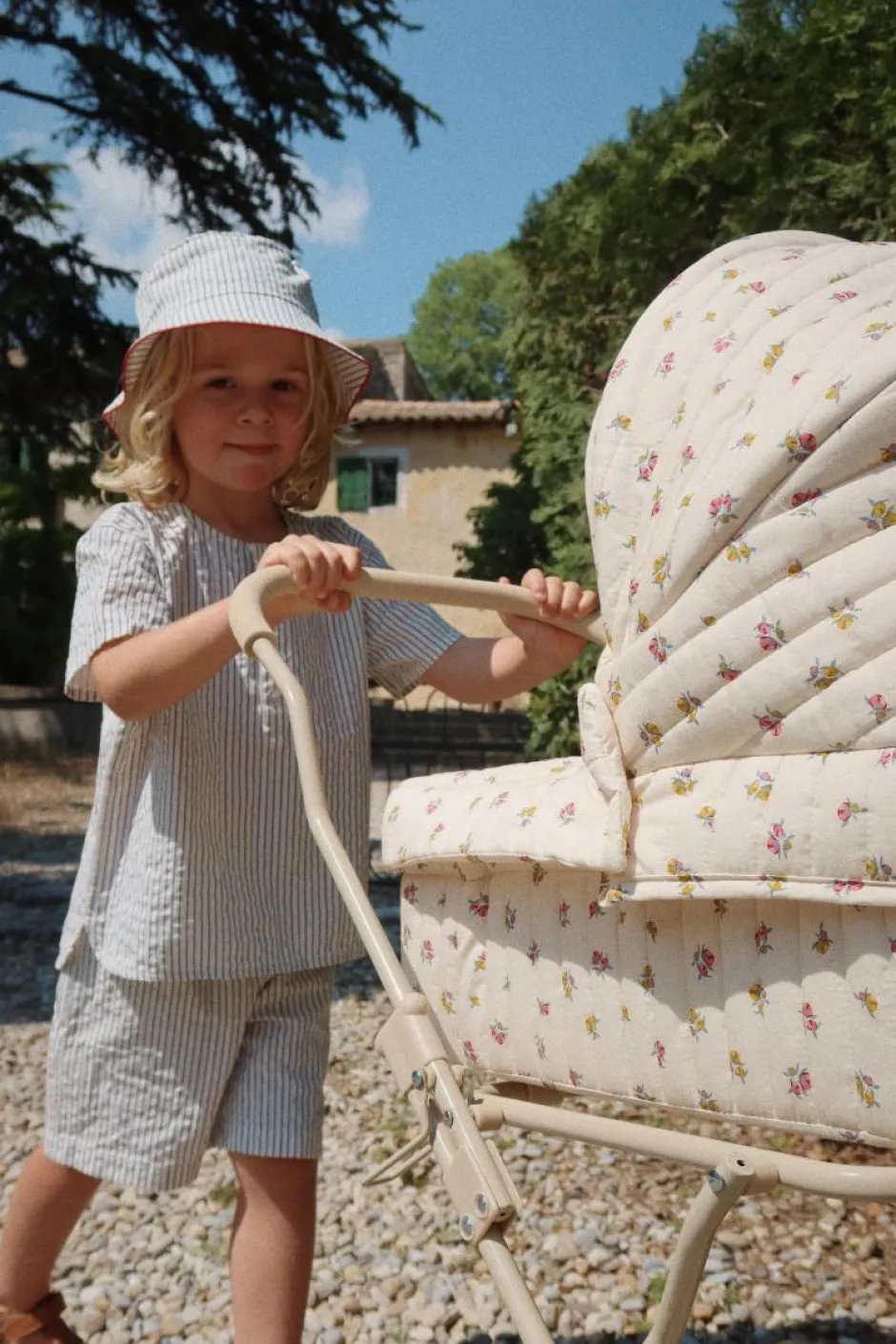 De hoge poppenwagen met kap heeft een gewatteerde bekleding en bijpassend matrasje. Onder de wandelwagen is er ruimte om een tas of poppenspulletjes mee te nemen. Een ideale poppenwagen voor korte en lange wandelingen.