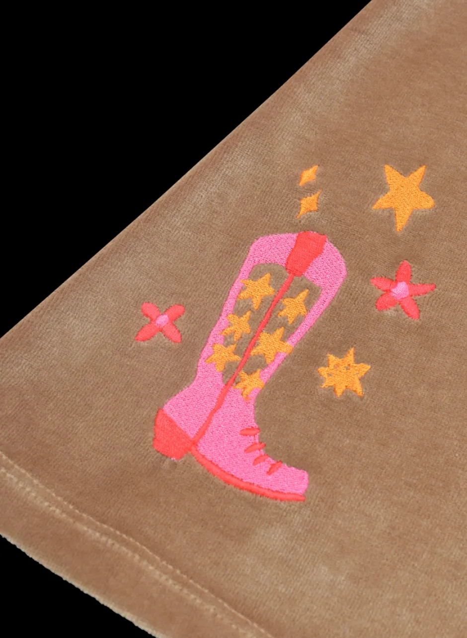 Hoe geweldig is deze flared broek voor jouw kleintje? Helemaal in de trend camel-kleur van dit jaar. Gemaakt van 80% biologisch katoen en 20% polyester. Combineer de broek met de bijpassende top voor de totale look, maar uiteraard kan je deze broek ook combineren met een tof jasje of shirtje.