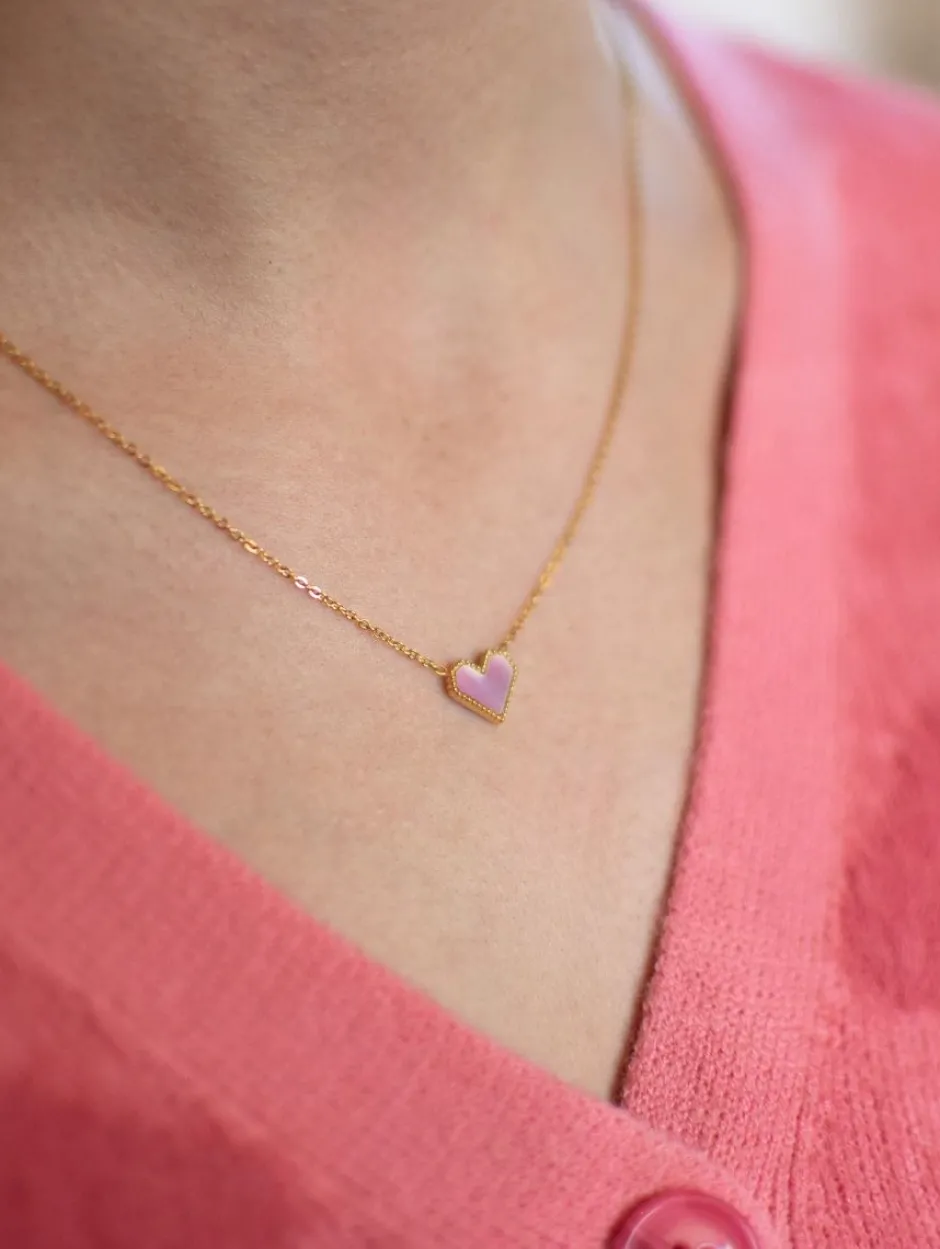 Dit dunne gouden kettinkje met een roze geometrisch hartje maakt jouw dagelijkse outfits helemaal af en is super leuk om te combineren met andere kettingen. Tip: ook perfect om cadeau te geven!