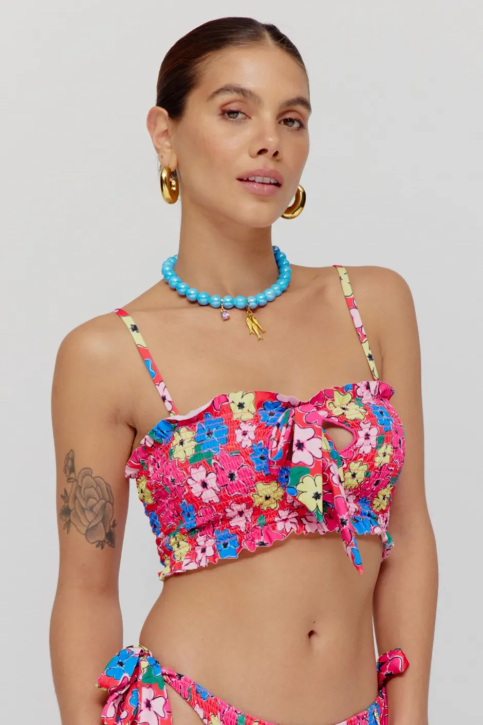 Deze vrolijke bikinitop heeft een all-over bloemenprint