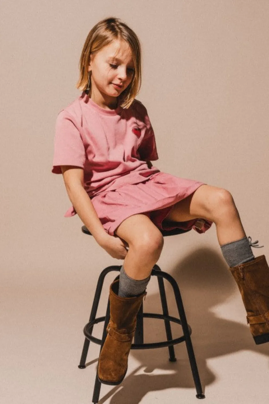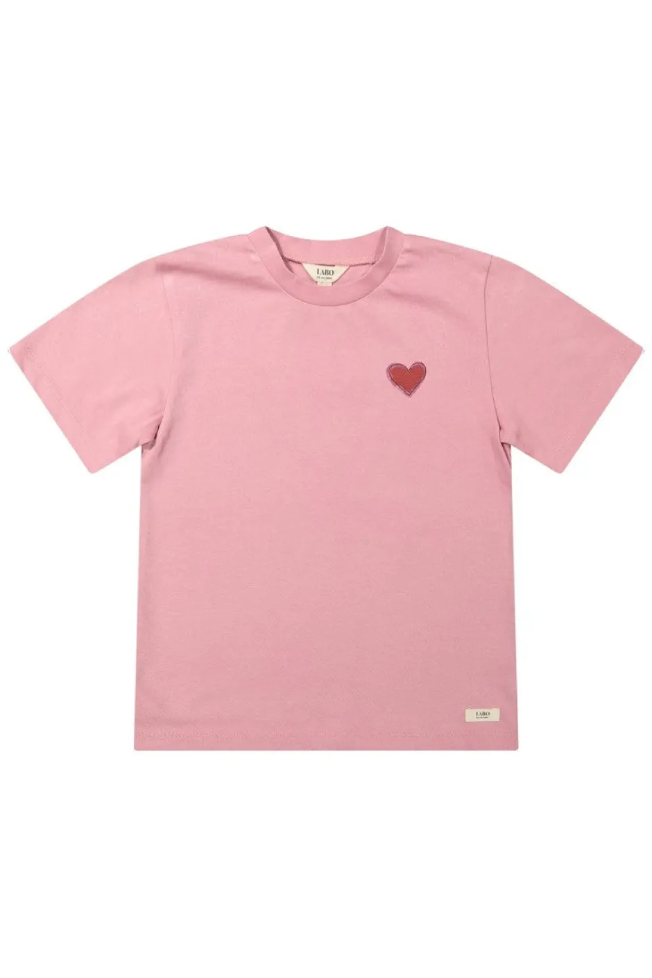 - Dit roze basic shirt heeft een hartje aan de voorzijde