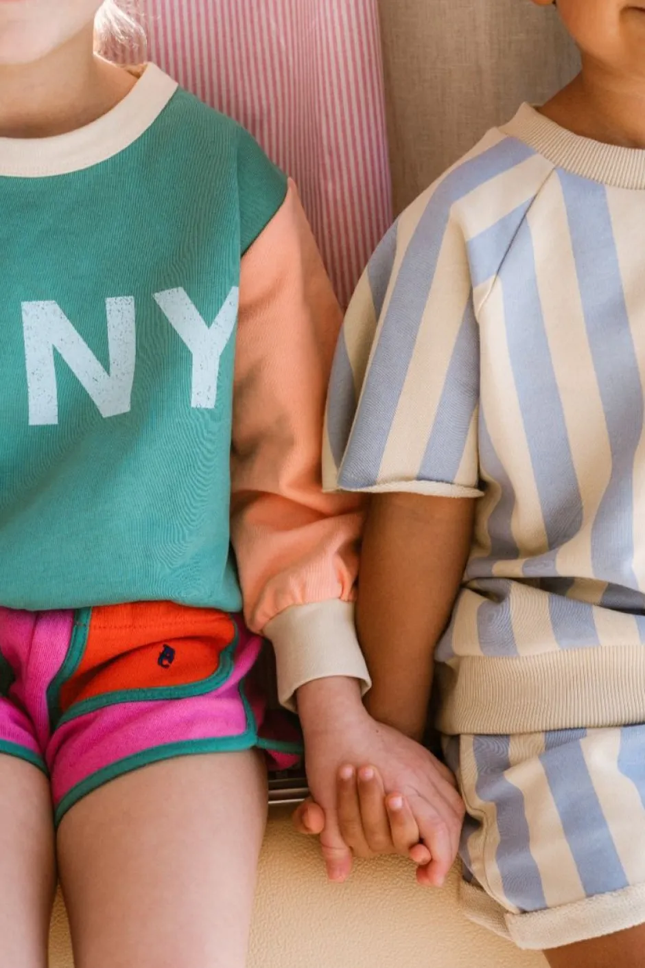 Deze gestreepte chino shorts zijn allesbehalve saai! Ze zijn gemaakt van superzacht, 100% biologisch katoen en een comfy stofje. De subtiele beige en blauwe streepjes geven een frisse look, terwijl de elastische tailleband ervoor zorgt dat ze altijd perfect passen. Of je nu naar het park gaat of een dagje weg deze shorts zijn ideaal voor elke gelegenheid!