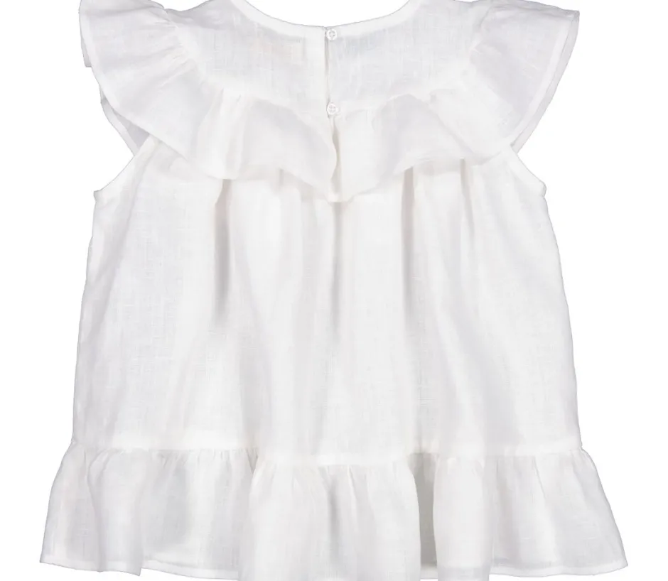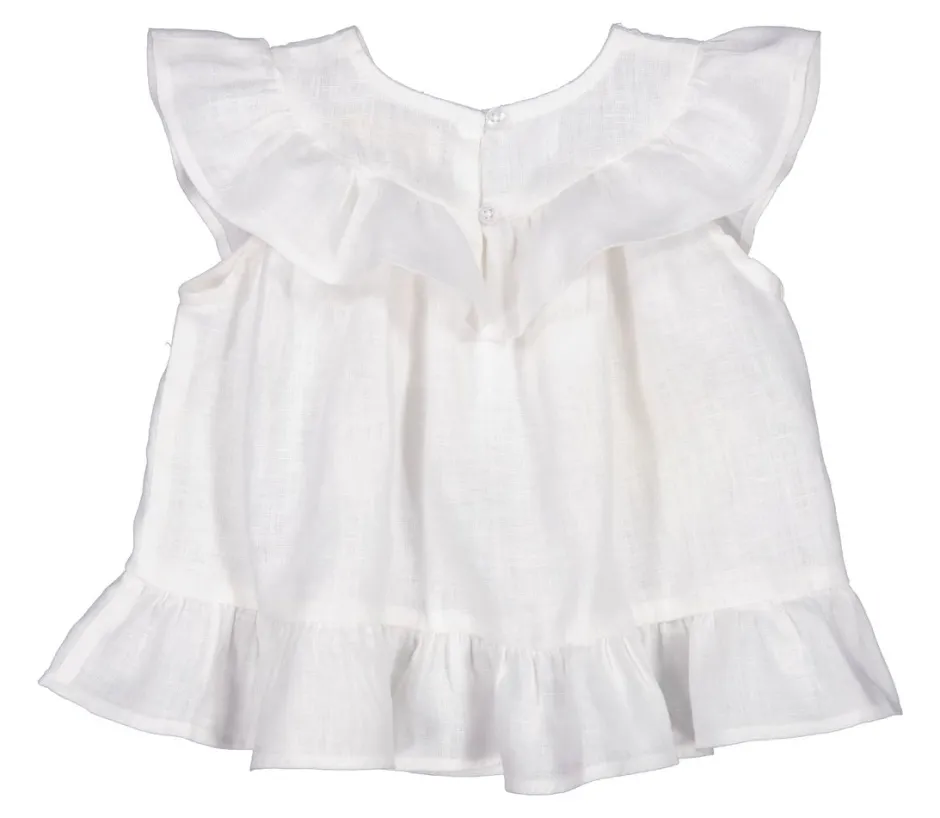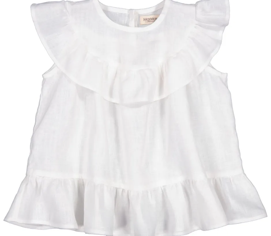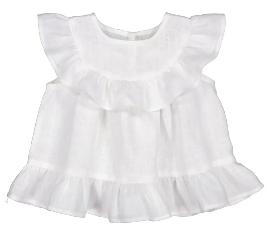 Hoe lief is deze top Tipa van MarMar Copenhagen? Het linnen topje heeft lieve ruffles aan de mouwen en oogt heerlijk zomers. Aan de achterzijde zitten knoopjes ter sluiting.