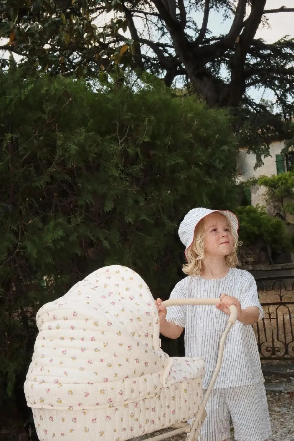 De hoge poppenwagen met kap heeft een gewatteerde bekleding en bijpassend matrasje. Onder de wandelwagen is er ruimte om een tas of poppenspulletjes mee te nemen. Een ideale poppenwagen voor korte en lange wandelingen.