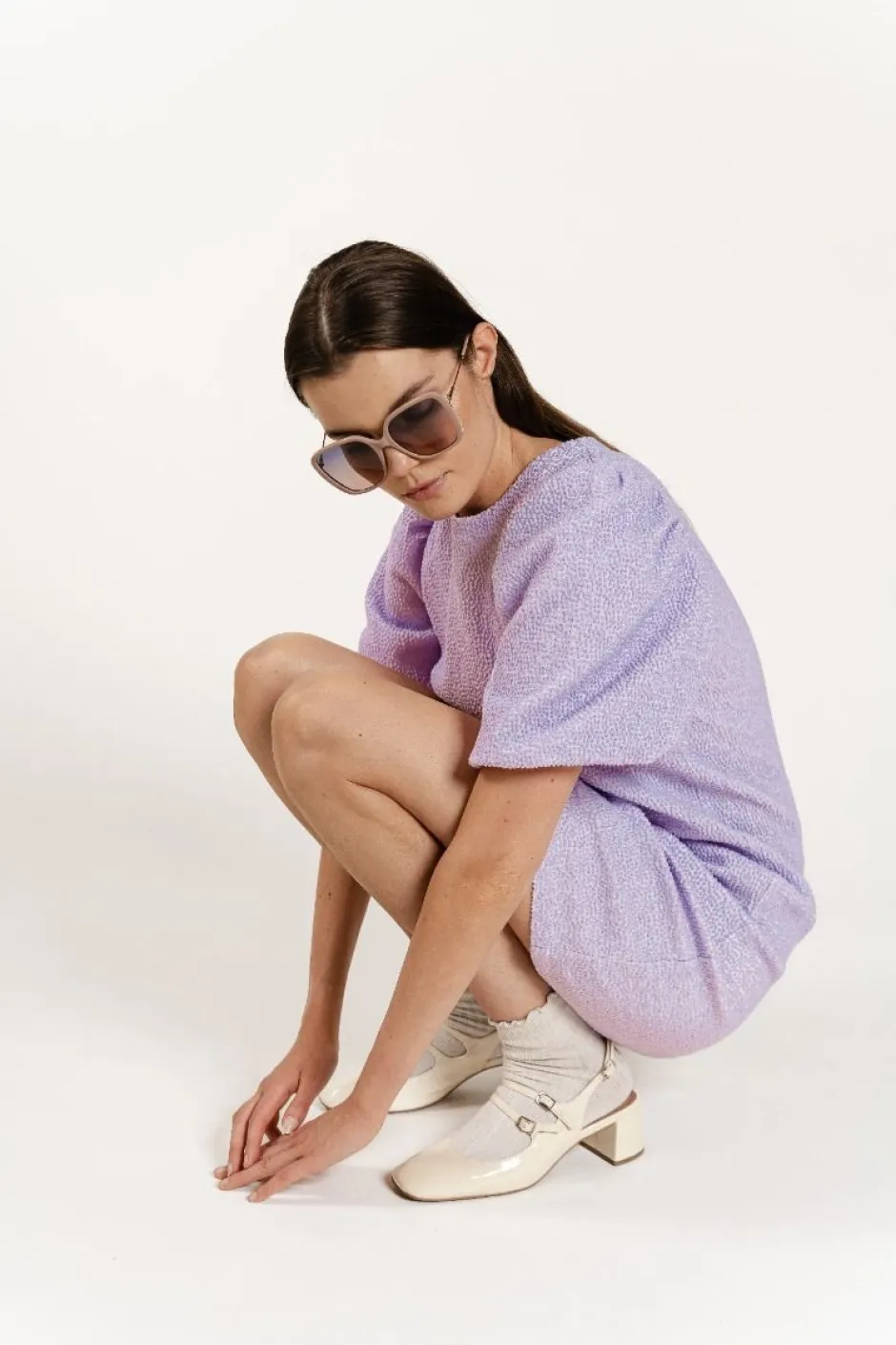 Wauw! Deze jurk van Bô-Dôme is de perfecte mix van elegantie en speelse charme. Deze jurk, met haar subtiele textuur en zachte lila tint, is ideaal voor elke gelegenheid. Of je nu een speciale gelegenheid hebt of gewoon je dag wilt opfleuren, deze jurk zorgt ervoor dat jij in de spotlight staat. Maak de look compleet door de jurk te combineren met stoere laarzen en een jasje, en je bent helemaal klaar om de dag te rocken.